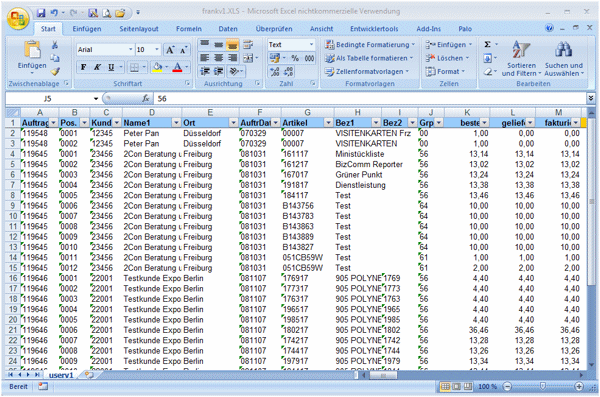Wenn Sie die Datei direkt mit Microsoft Excel öffnen, sind bereits bestimmte Eigenschaften gesetzt: die erste Zeile ist fixiert, die Datenfilter sind aktiviert!